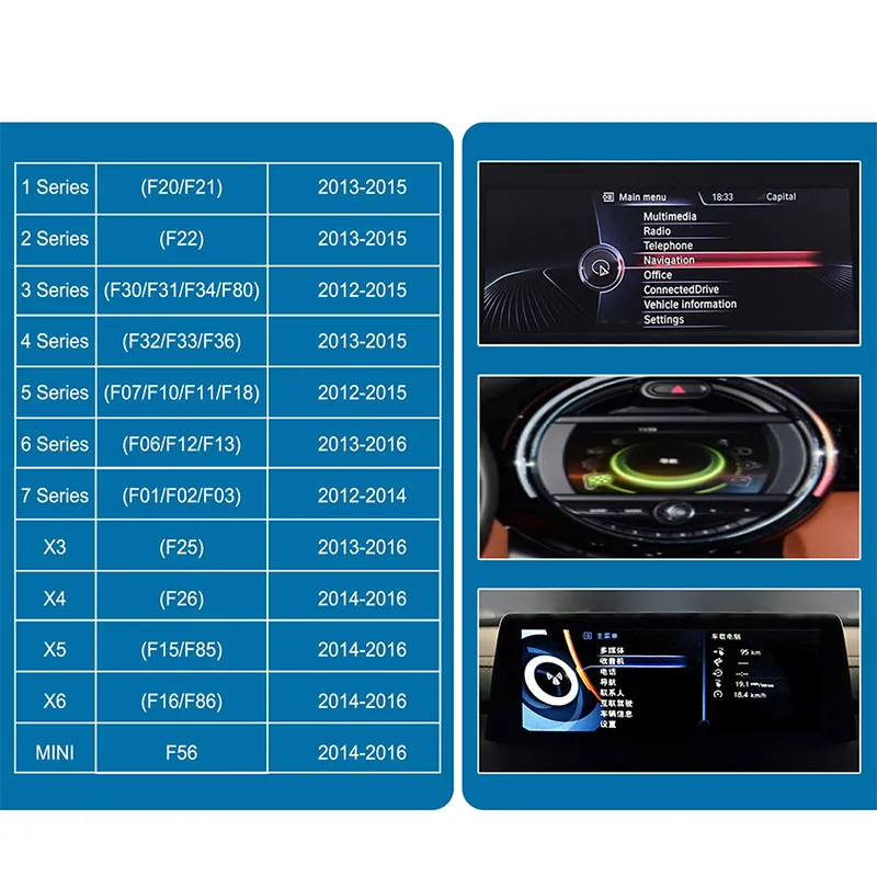 Αναβαθμίστε την BMW σαςΚουτί αποκωδικοποίησης CarPlay συμβατό με πολλαπλές σειρές BMW (1 – 7, X3 – X6) και MINI F56 (συγκεκριμένα έτη μοντέλου) Upgrade Your BMWCarPlay Decoder Box Compatible with Multiple BMW Series (1 – 7, X3 – X6) and MINI F56 (Specified Model Years) |