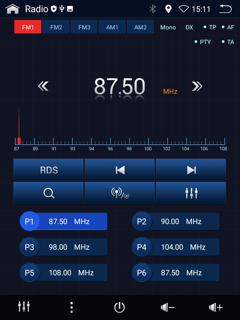 1-DIN receiver with red illumination, USB and compatible with Android devices.